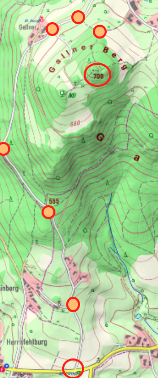 Diese drei Orte, ersterer westlich bis zu 200 m hoch über dem Kinsachtal bei Stallwang gelegen, letzterer ebenso etwa 200 m östlich über Stallwang - wenn man den Gallnerberggipfel dazu nimmt nochmal 200 m höher - sind die vielleicht schönst gelegenen, auch historisch interessantesten Dörfer der Region des Kinsachtals: